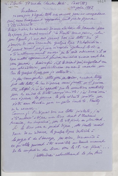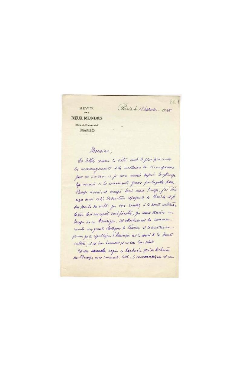 [Carta] 1937 ago. 22, París, Francia [a] Magdalena Petit [manuscrito] Max Daireaux.
