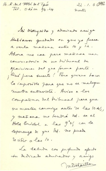[Carta] 1934 mar. 23, Madrid, España [a] Francis de Miomandre [manuscrito] Augusto D'Halmar.