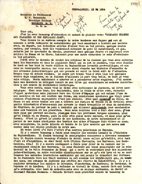 Reyes, Salvador - Autores franceses - Manuscritos franceses - Frank, Nino - Correspondencia - Autores chilenos