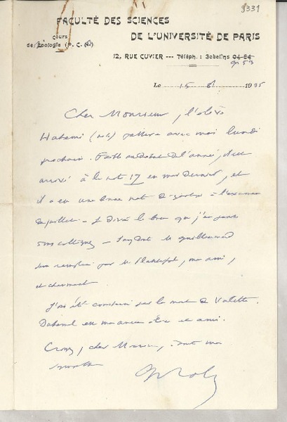 [Carta] 1930 sep. 7, París, Francia [a] Magdalena Petit [manuscrito] Alexandre Arnoux.
