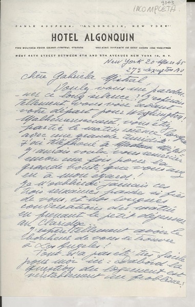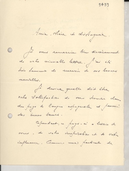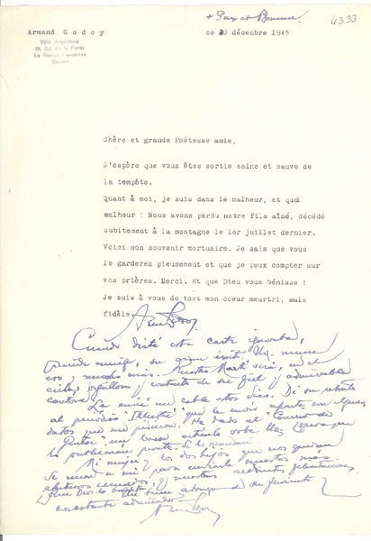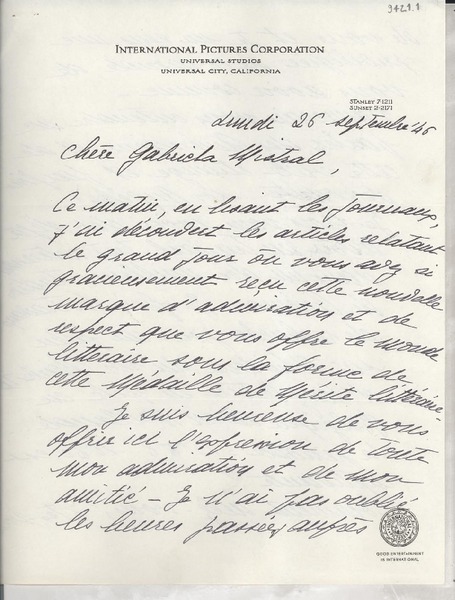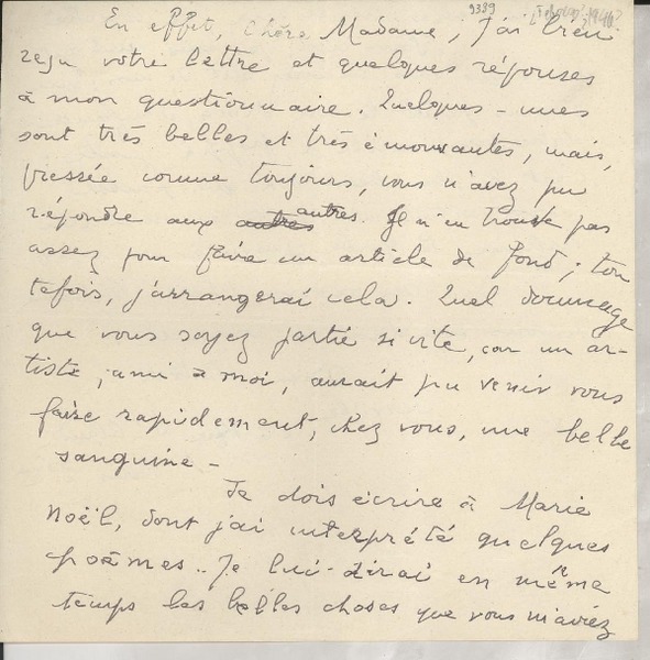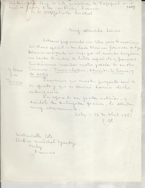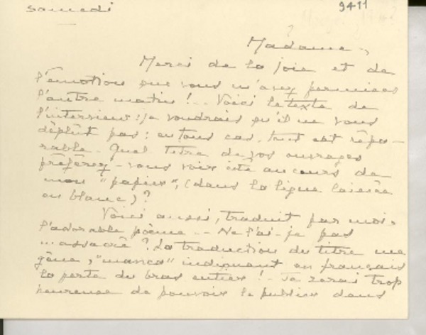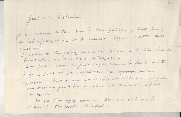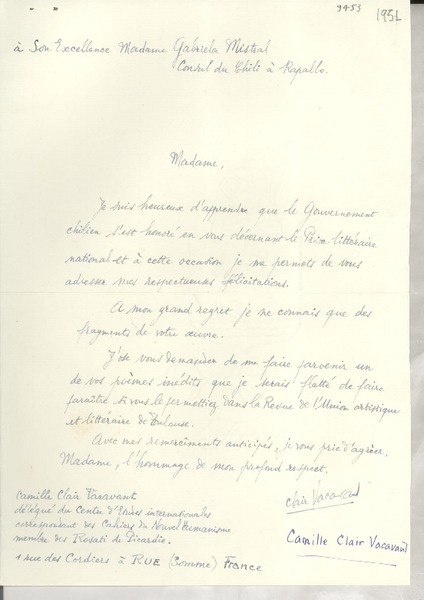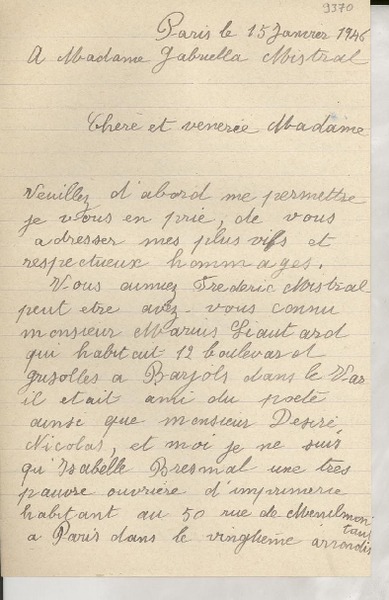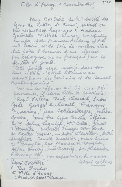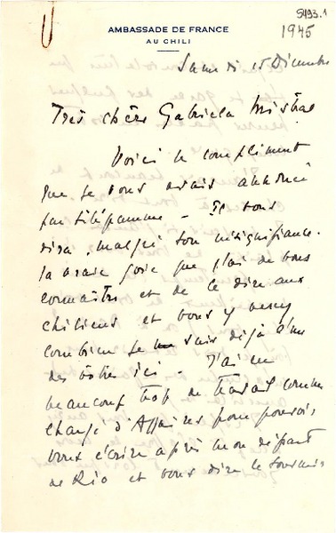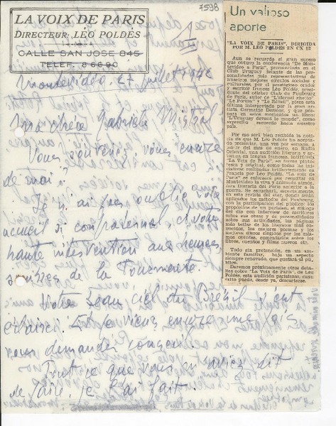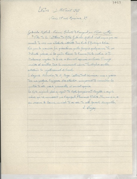 Correspondencia - Mistral, Gabriela - Manuscritos franceses