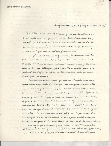 Saint-Cyr-Sur-Morin, Francia [a] Salvador Reyes Cartas, entre 1942 y 1948, [manuscrito] Pierre Mac Orlan.