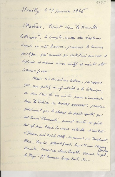Baeza Flores, Alberto - Correspondencia - Autores chilenos - Manuscritos franceses