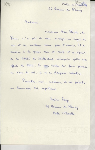 Paris y Souché, Francia [a] Salvador Reyes Cartas, desde febrero a diciembre de 1946, [manuscrito] Francis de Miomandre.