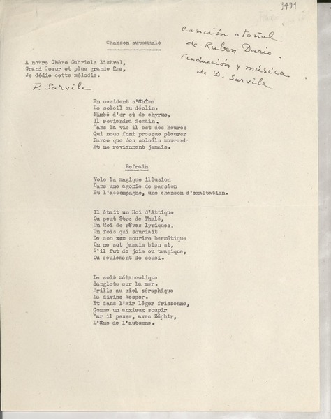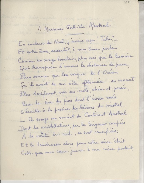 Mistral, Gabriela - Manuscritos franceses - Miomandre, Francis de - Correspondencia - Autores franceses
