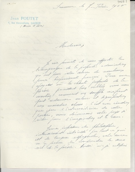 Correspondencia - Mistral, Gabriela - Manuscritos franceses - Marmottan, M.