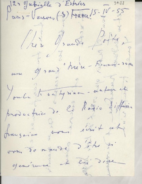 Santiago, Chile y París, Francia [a] Salvador Reyes Tarjetas, Cerca de 1955, [manuscrito] Varios autores.