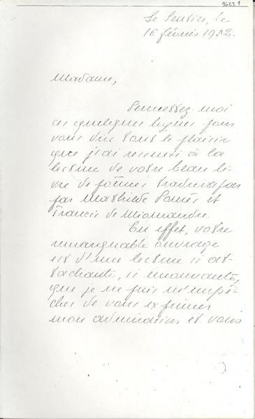 Correspondencia - Mistral, Gabriela - Manuscritos franceses - Secrétan, D.