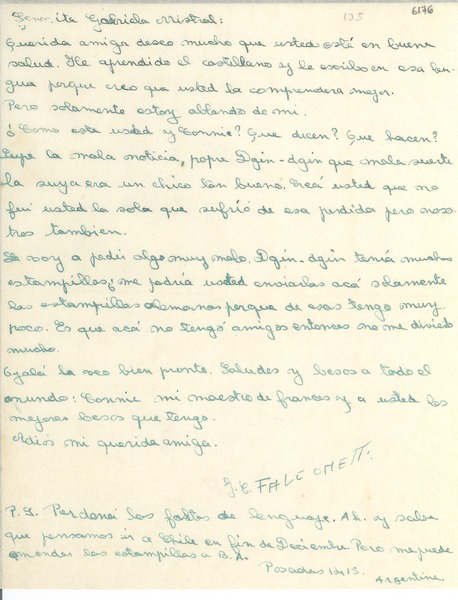 Falconetti, Renée Jeanne - Manuscritos franceses - Correspondencia - Mistral, Gabriela