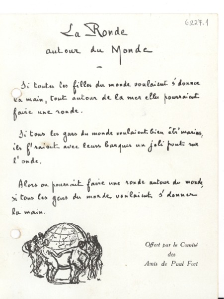 [Tarjeta] [Francia] [a] Gabriela Mistral [manuscrito] Paul Fort.