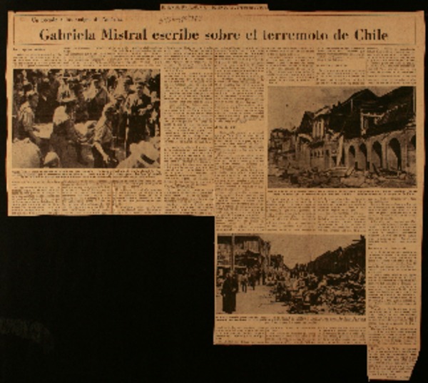 Gabriela Mistral escribe sobre el terremoto de Chile un recado a los amigos de América [artículo] : Gabriela Mistral.