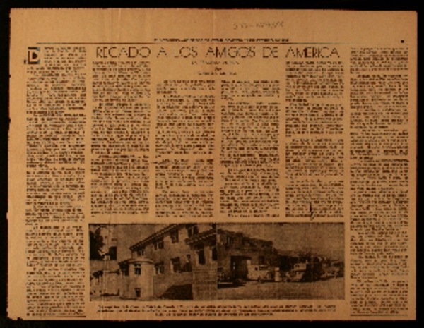 Recado a los amigos de América la tragedia andina [artículo] : por Gabriela Mistral.