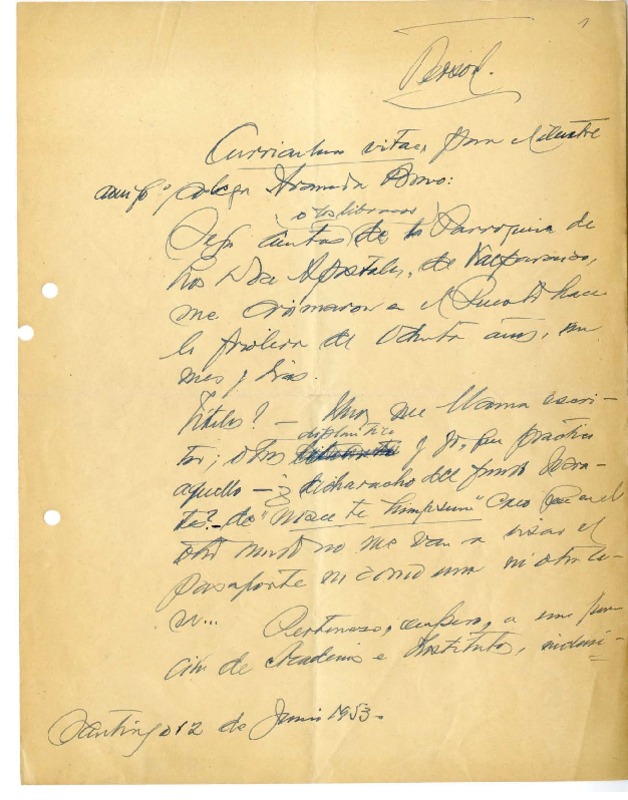 [Carta] 1953 junio 12, Santiago, Chile [a] Fidel Araneda Bravo [manuscrito] Emilio Rodríguez Mendoza.