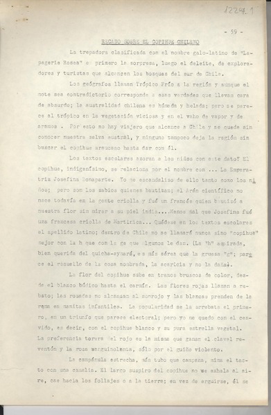 Recado sobre el copihue chileno [manuscrito] Gabriela Mistral.