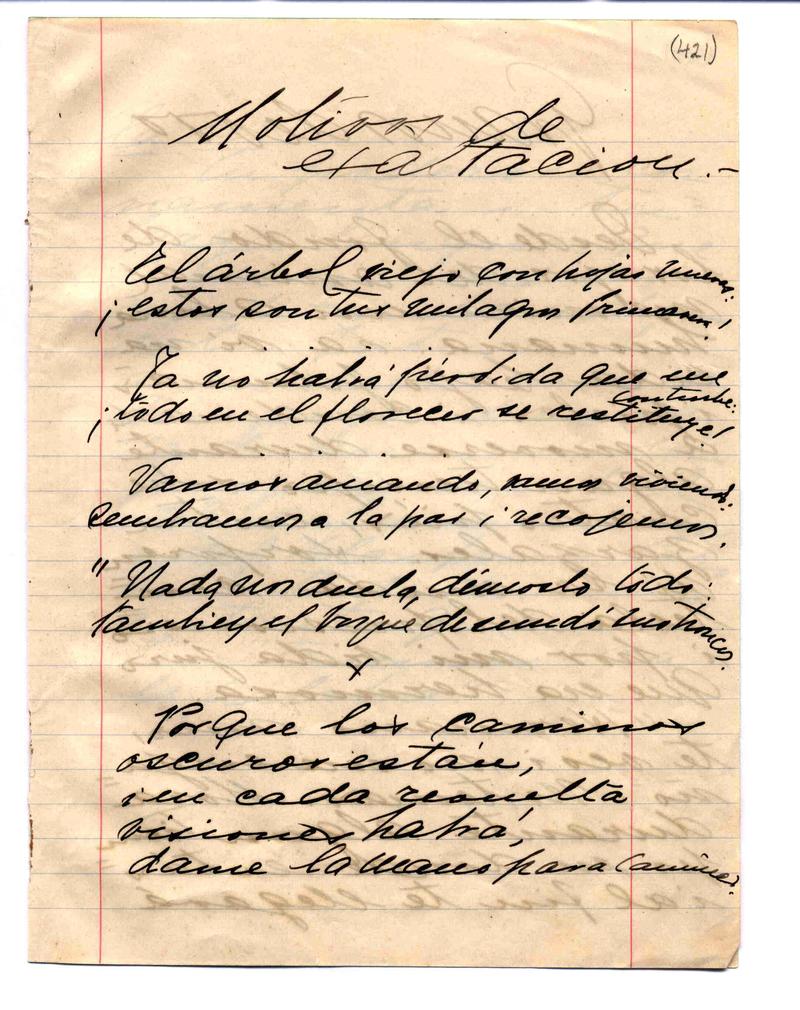 [Las hojas secas de éste otoño...] [manuscrito] Paz Villaseñor.