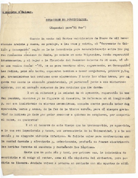 Rehacerse es fortificarse [artículo] : [manuscrito] Augusto D'Halmar.