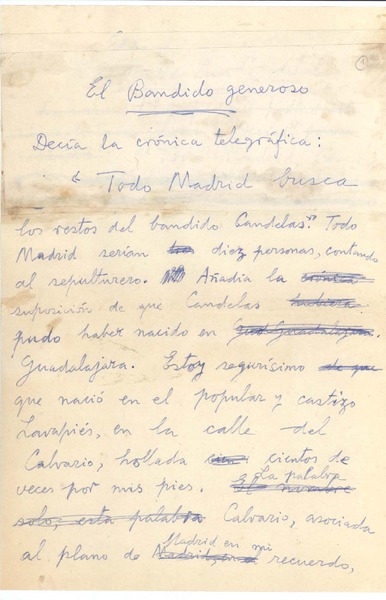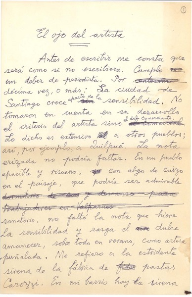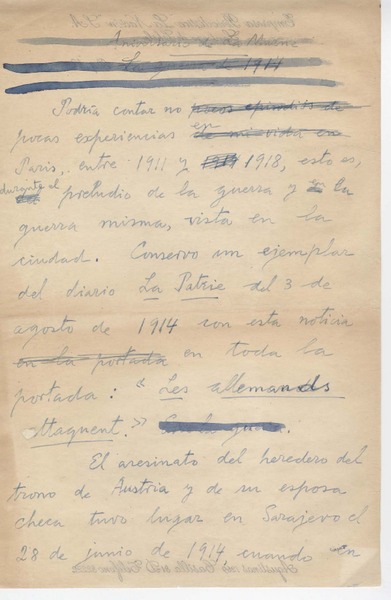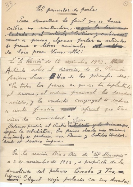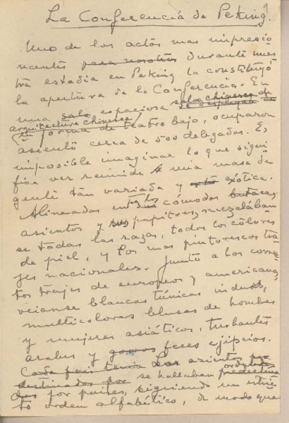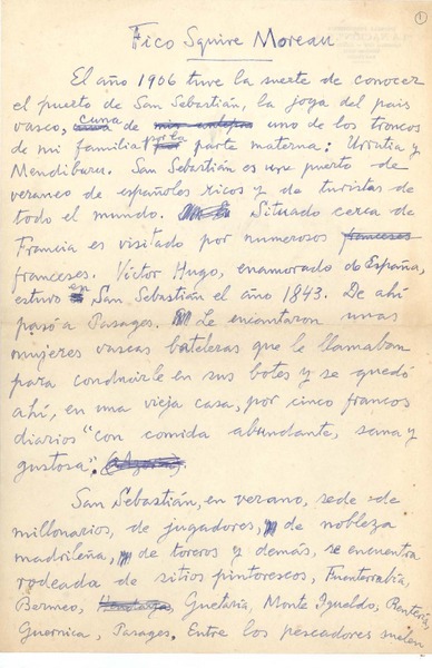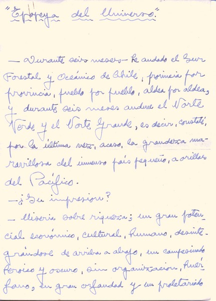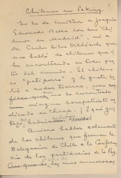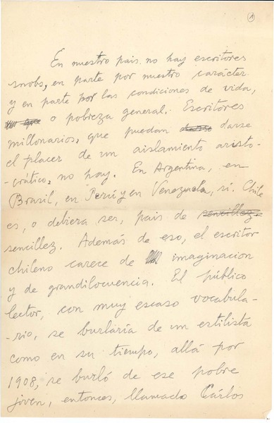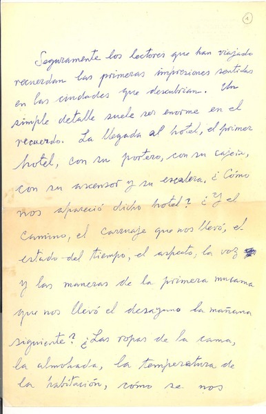 [Seguramente los lectores que han viajado...] [manuscrito] Joaquín Edwards Bello.
