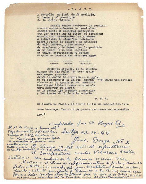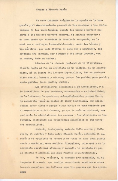 Marín, Ricardo - Manuscritos chilenos - Artículos periodísticos - Homenaje