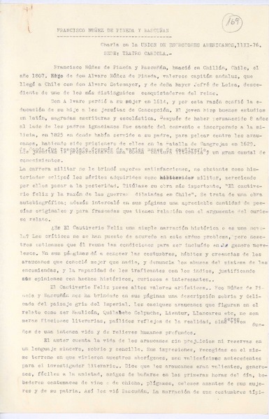 [Sara Bernhardt en Chile] [manuscrito] Nathanael Yáñez Silva.