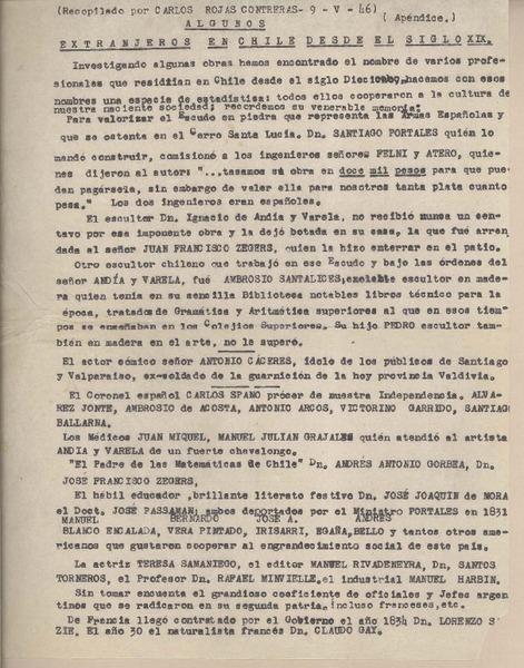Algunos extranjeros en Chile desde el siglo XIX [manuscrito] C. Rojas C.
