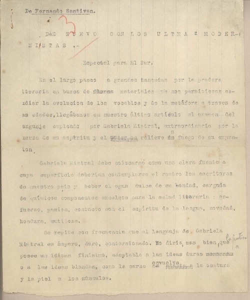 Manuscritos chilenos - Artículos periodísticos - Mistral, Gabriela