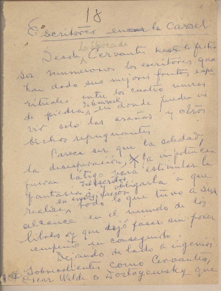 Cárceles para Chile [manuscrito] Joaquín Edwards Bello.