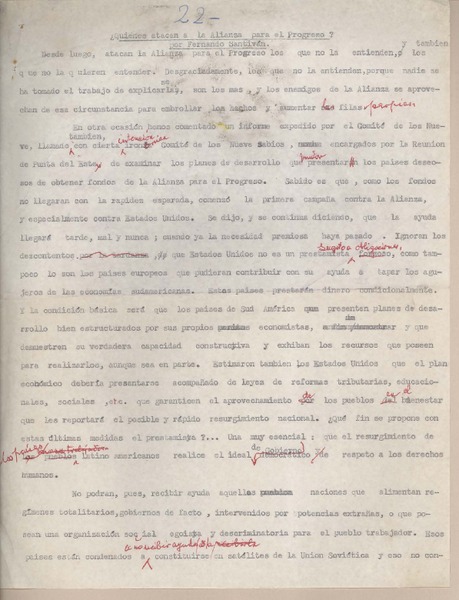 ¿Quienes atacan a la alianza para el progreso? [manuscrito] Fernando Santiván.