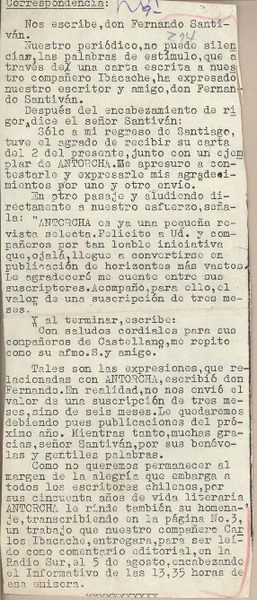 Ángel Cruchaga Santa María [manuscrito] Fernando Santiván.