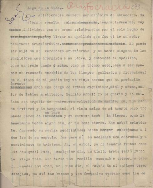 Aristocracia [manuscrito] Joaquín Edwards Bello.
