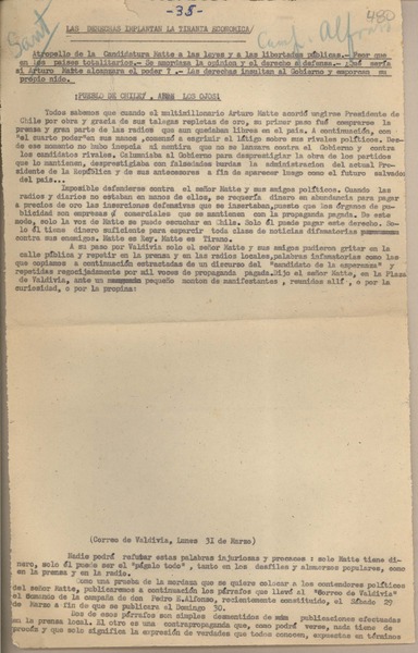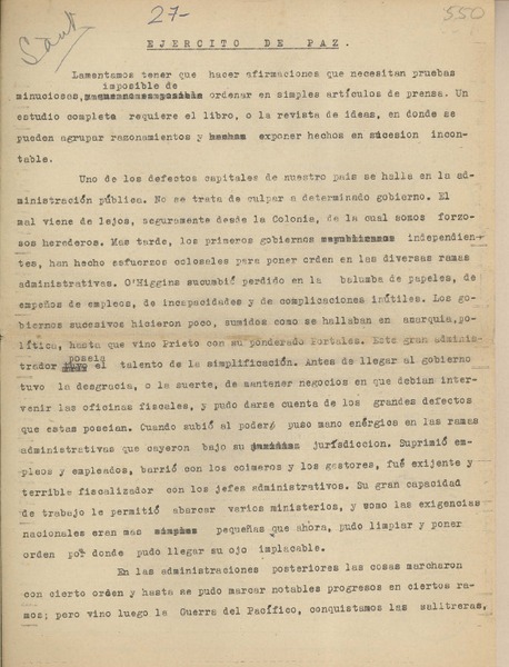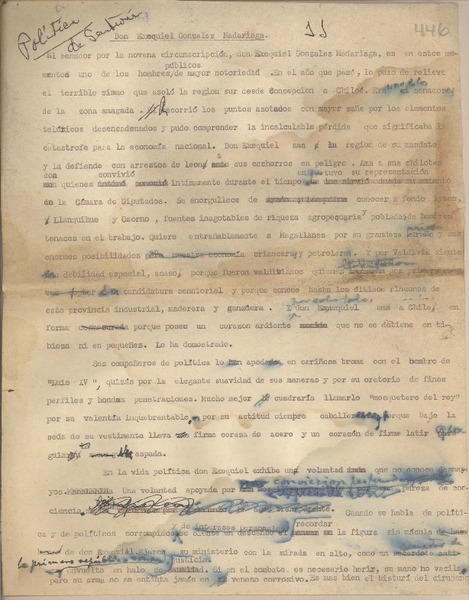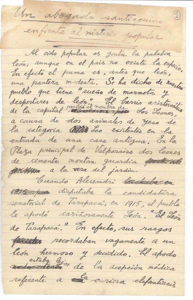 Manuscritos chilenos - Artículos periodísticos - Presidentes - Alessandri Palma, Arturo