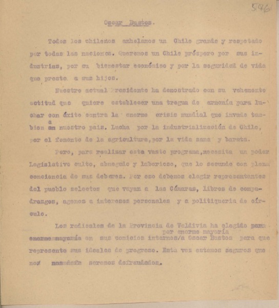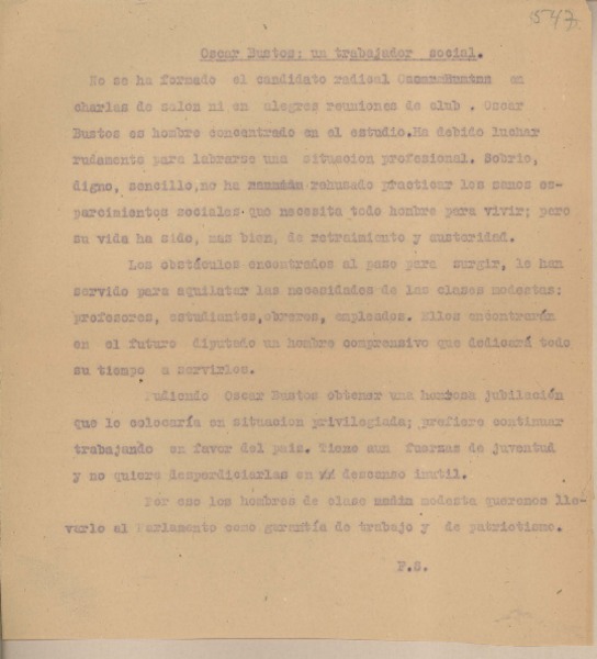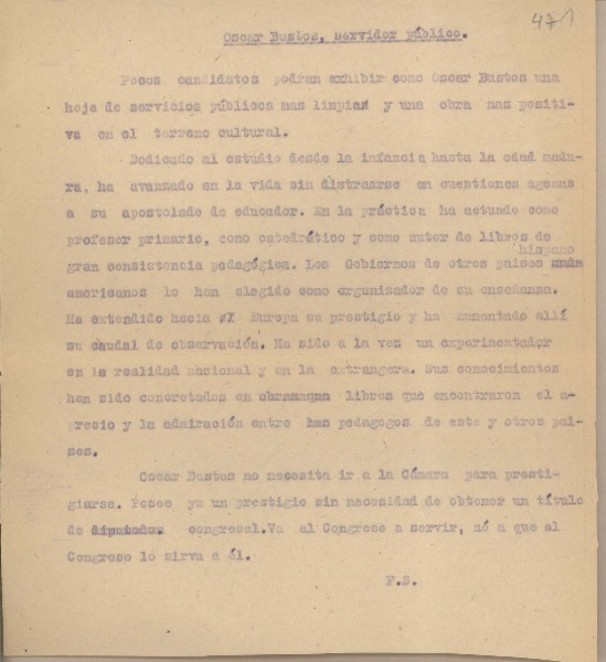 Bustos Aburto, Oscar - Manuscritos chilenos - Artículos periodísticos - Aguirre Cerda, Pedro