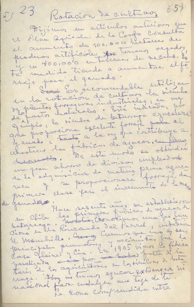 Rotación de cultivos [manuscrito] Fernando Santiván.