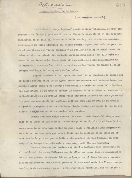 Arte valdiviano [manuscrito] Fernando Santiván.