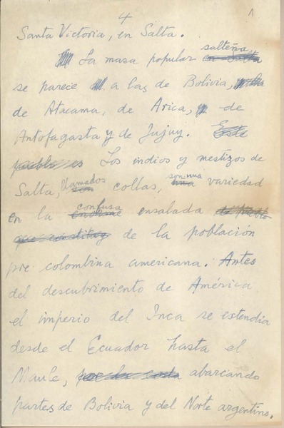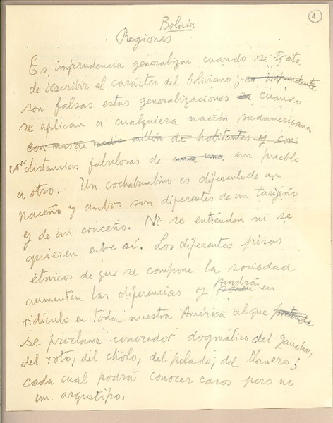 Bolivia Regiones [manuscrito] Joaquín Edwards Bello.