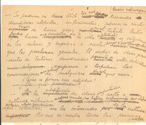 Teorías estravagantes [manuscrito] Joaquín Edwards Bello.