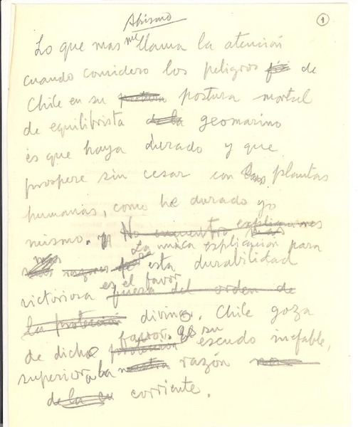 Abismo [manuscrito] Joaquín Edwards Bello.