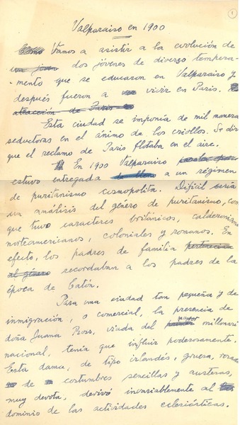 Valparaíso en 1900 [manuscrito] Joaquín Edwards Bello.