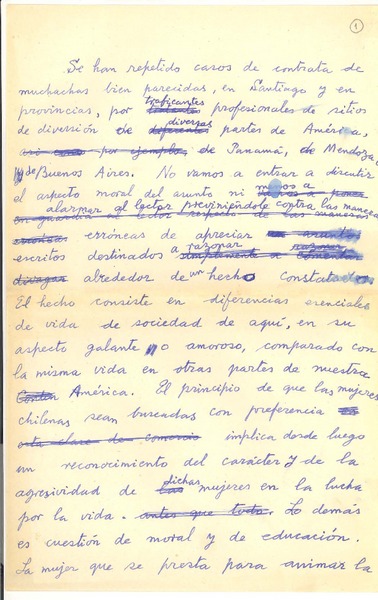 [Se han repetido casos de contratas de muchachas...] [manuscrito] Joaquín Edwards Bello.