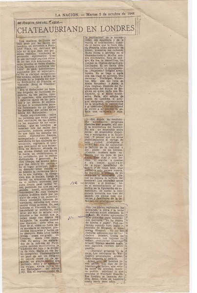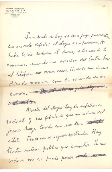 [Su artículo de hoy es una joya periodística....] [manuscrito] Joaquín Edwards Bello.