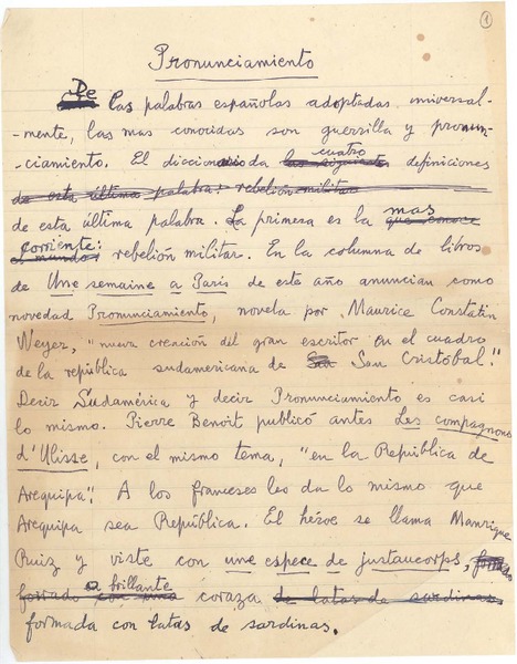 Pronunciamiento [manuscrito] Joaquín Edwards Bello.