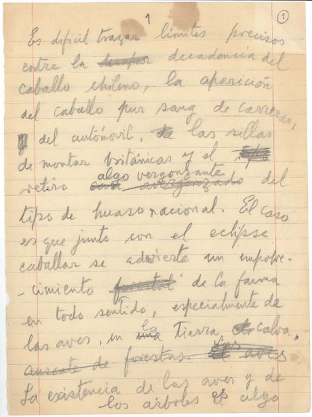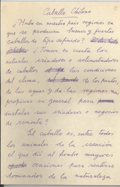 Caballo chileno [manuscrito] Joaquín Edwards Bello.