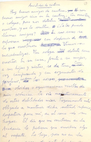 Amistades de cantina [manuscrito] Joaquín Edwards Bello.