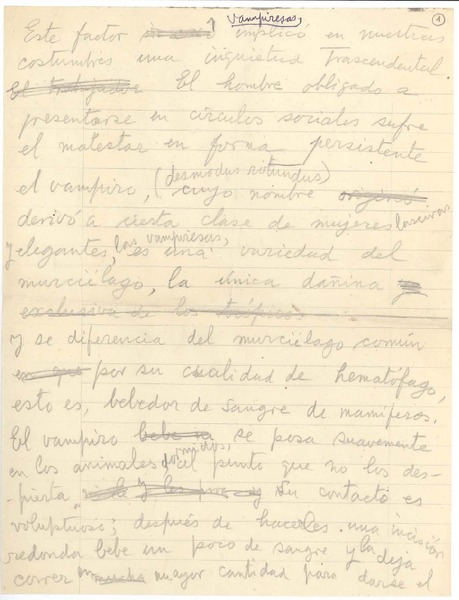 Vampiresas [manuscrito] Joaquín Edwards Bello.