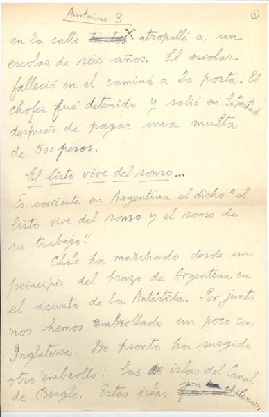 Antes y ahora [manuscrito] Joaquín Edwards Bello.