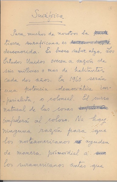 Sudáfrica [manuscrito] Joaquín Edwards Bello.