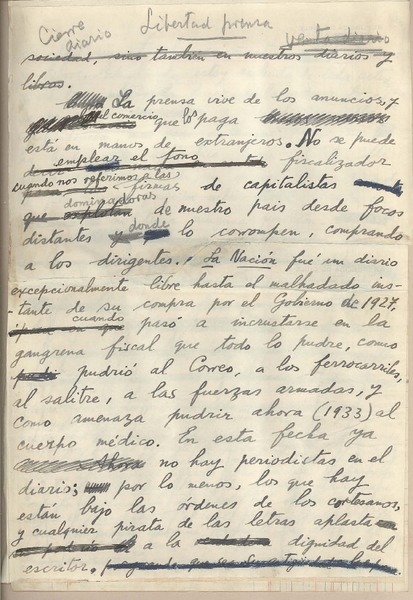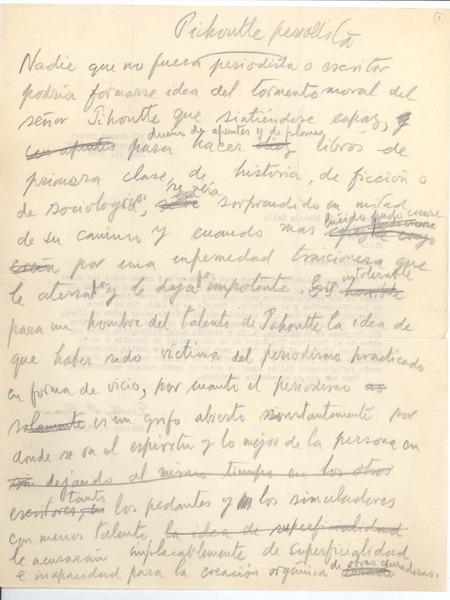 Reflexiones de periodista [manuscrito] Joaquín Edwards Bello.