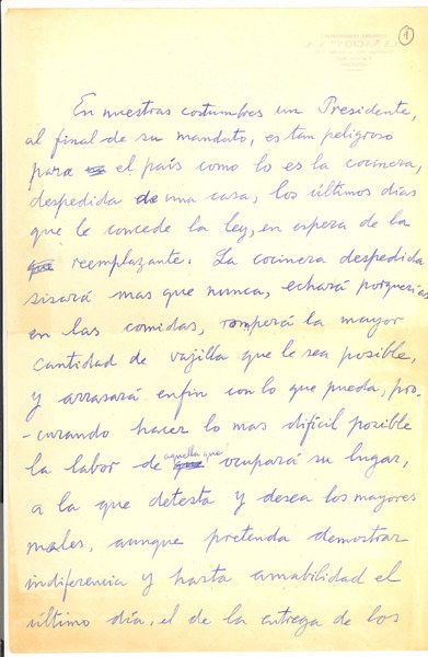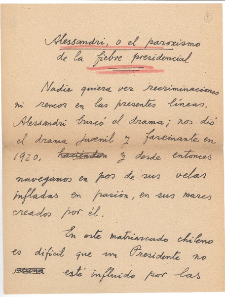Alessandri o el paroxismo de la fiebre presidencial [manuscrito] Joaquín Edwards Bello.