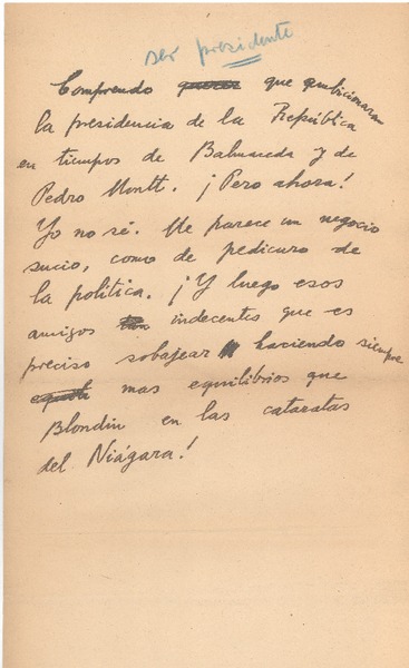 Ser presidente [manuscrito] Joaquín Edwards Bello.