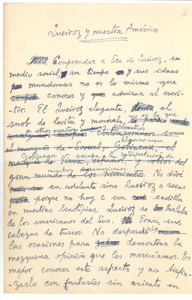 Queiroz y nuestra América [manuscrito] Joaquín Edwards Bello.