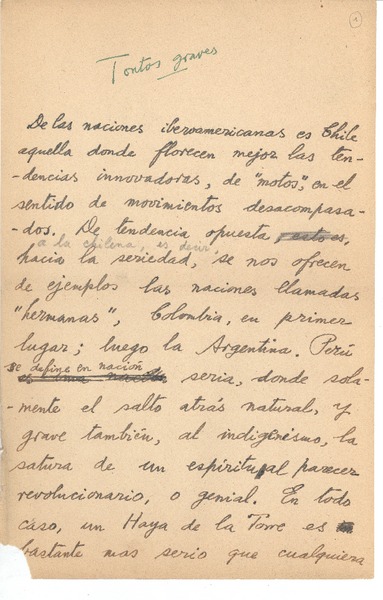 Tontos graves [manuscrito] Joaquín Edwards Bello.